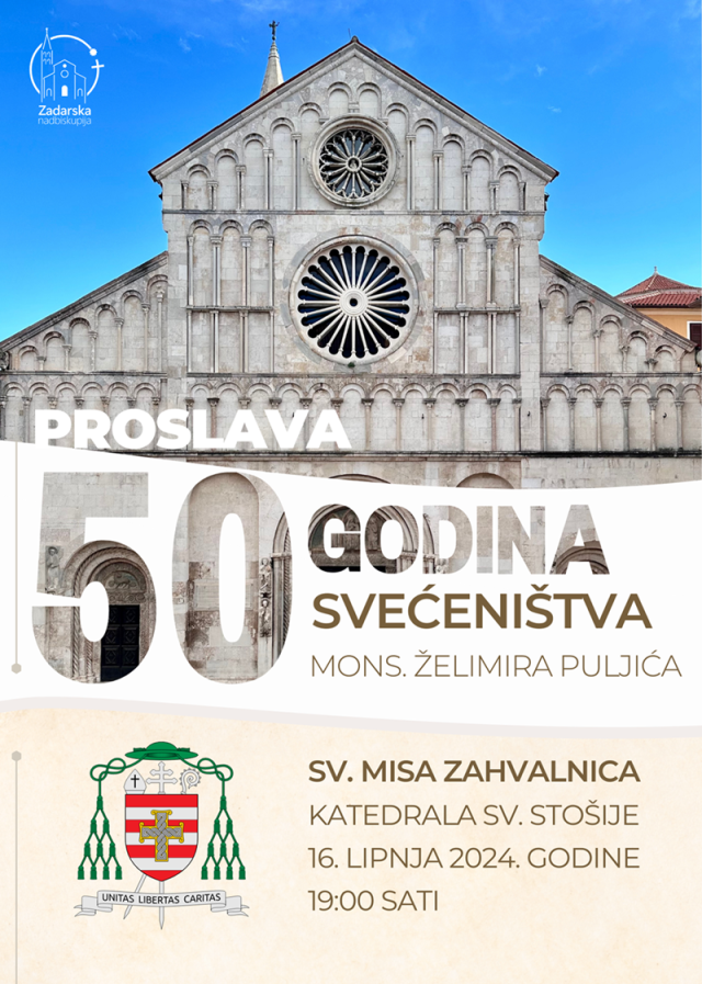 Mons. Puljić predvodi zahvalno misno slavlje u katedrali sv. Stošije u Zadru s početkom u 19 sati. Na misi propovijeda zagrebački nadbiskup Dražen Kutleša, predsjednik HBK.