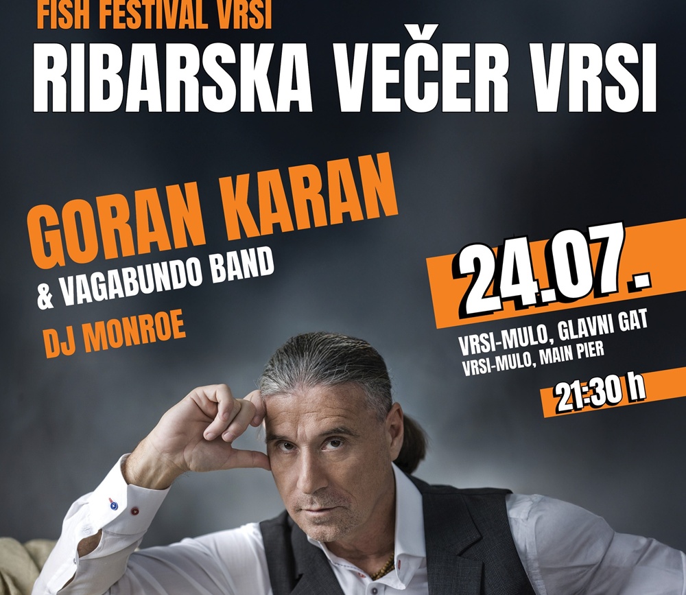 Poznata izreka kaže da riba pliva tri puta – u moru, u maslinovom ulju i u vinu. Sve tri “plovidbe” bit će itekako prisutne u četvrtak, 24. srpnja, kada se na Glavnoj rivi u Vrsima održava tradicionalna Ribarska večer. Početak fešte zakazan je za 21.30 sati, a ovogodišnji glazbeni program jamči večer za pamćenje – nastupaju Goran Karan i Vagabundo bend.