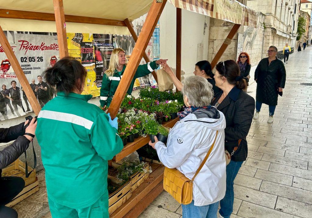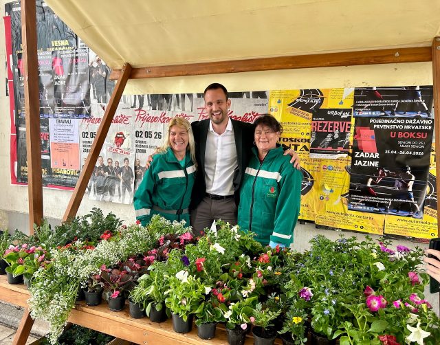 Sadnice cvijeća pogodne za uzgoj na balkonima i terasama podijelio je jutros gradonačelnik Šime Erlić građanima, zajedno s djelatnicama Nasada.