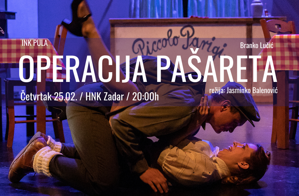 Od sutra, 20. veljače u prodaji su ulaznice za predstavu INK PULA, OPERACIJA PAŠARETA koja gostuje u četvrtak, 25. veljače u HNK Zadar u 20 sati. Cijena ulaznice iznosi 60,00 kuna.