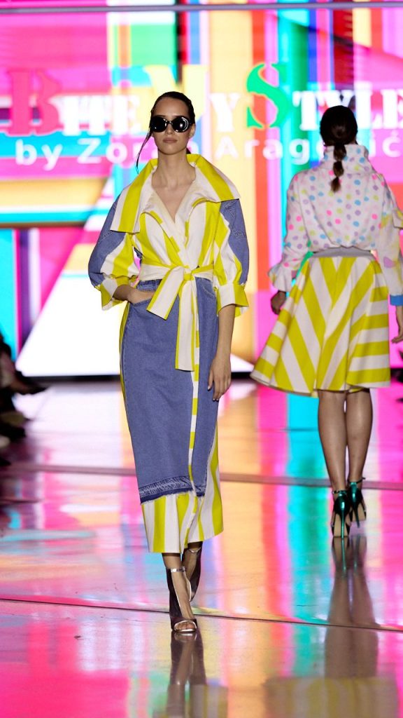 BiteMyStyle by Zoran Aragović predstavio je kolekciju inspiriranu pop artom, geometrijskim oblicima i upečatljivim printom, u vrlo nosivim kreacijama u kojima žene mogu provesti cijeli dan. Aragović je u prvom planu svoje kolekcije stavio boje po kojima je prepoznatljiv – odjeću koja vas čini zamijećenima, koja naglašava individualnost i karakter. Siluete u kolekciji igraju kontrastima: od lepršavih košulja s naglašenim volumenom do linija koje elegantno prate figuru, poput pencil suknji midi dužine. Baloneri od trapera oversize kroja, asimetrične haljine i odijela samo su neki od komada koji naglašavaju unikatnu stilsku filozofiju Zorana Aragovića, čineći svaku kreaciju ne samo odjećom, već i umjetničkim izrazom. Cijelu modnu kolekciju poznatog dizajnera upotpunila je i optika Visus koja je predstavila najnovije kolekcije sunčanih naočala za nadolazeće vrijeme.