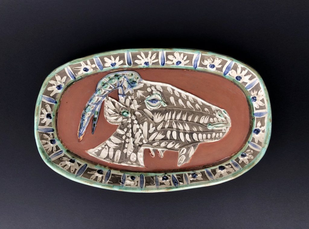 Unatoč velikom svjetskom i povijesnom uspjehu Pablo Picasso konstantno je tražio nove načine umjetničkog izražavanja. Nakon Drugog svjetskog rata, točnije godine 1946., na svom putu po južnoj Francuskoj zatekao se u gradu Vallaurisu gdje je ostao očaran keramikom proizvedenom u Ateljeu Madoura čiji su vlasnici bili Suzanne i Georges Ramie s kojima će uskoro sklopiti partnerstvo. Partnerstvo koje će ujedno iznjedriti jedno najplodonosnijih Picassovih razdoblja. Picasso je dizajnirao 633 različite keramičke edicije u razdoblju između 1947. i 1971. godine. Krenuo je s ukrašavanjem jednostavnih utilitarnih predmeta da bi potom uslijedili složeniji umjetnički, ali i funkcionalni oblici. Svidjela mu se činjenica da je keramika estetski ugodna te u isto vrijeme funkcionalna.