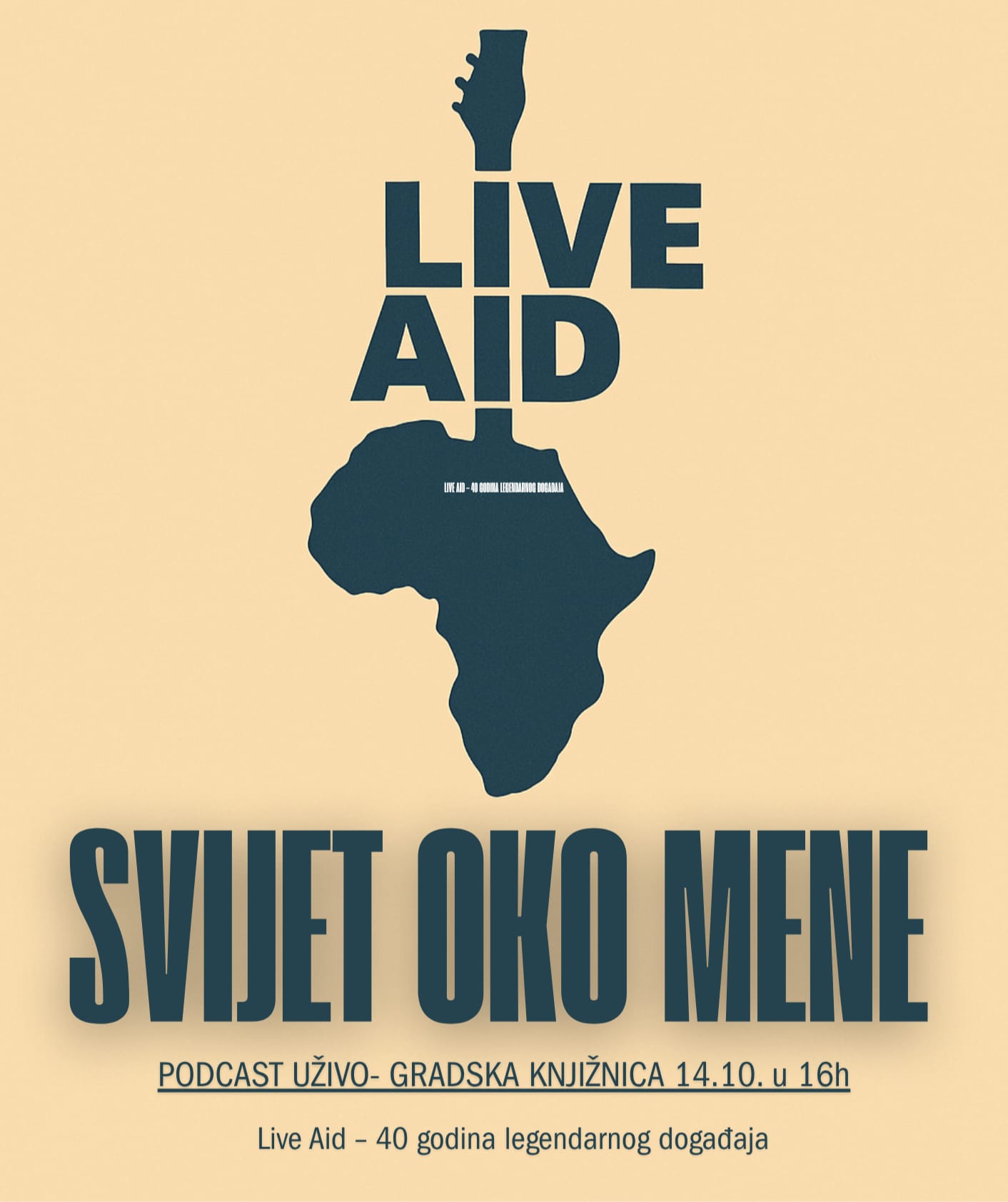 Posjetitelji će imati priliku čuti razgovor o povijesti Live Aida, njegovom utjecaju na glazbenu industriju i humanitarne akcije te osobnim uspomenama gostiju koji su godinama povezani s radijem, glazbom i lokalnom kulturom. Program je namijenjen svim generacijama — od onih koji su Live Aid pratili uživo u medijima 1985. do mlađih slušatelja koji tek otkrivaju priču o tom događaju.