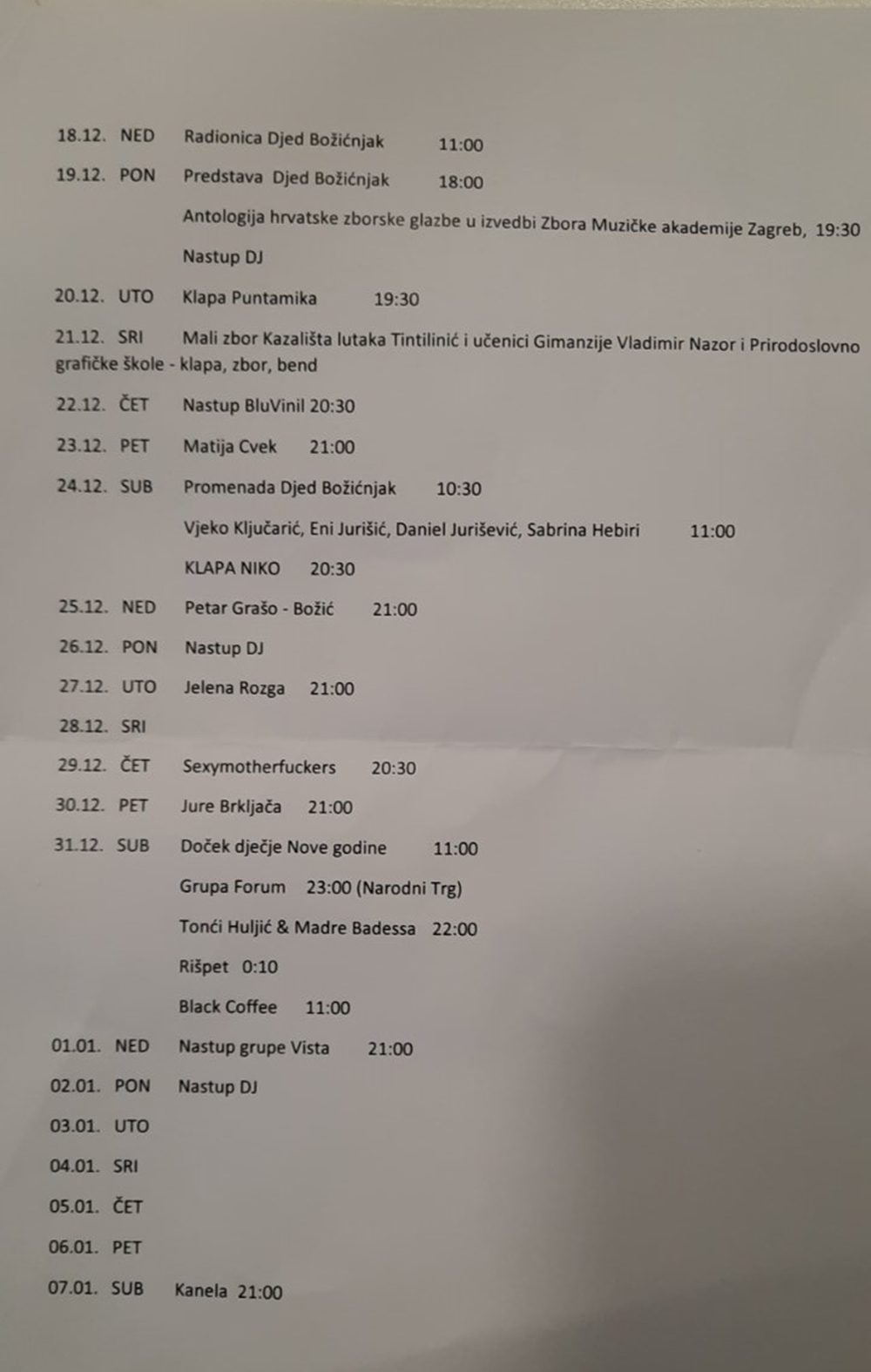 „Advent počinje 24.11 završava 7.1. sljedeće godine. Vjerujemo kako će nam vremenske prilike ali i da će nam sve druge okolnosti pružiti da sav programski sadržaj odradimo u punom planu. Izuzev standardnih partnera, TZ Grada Zadra, Grad Zadar, TZ Zadarske županije i zadarske HGK, Hrvatske obrtničke komore Zadar i Udrugom zadarskih ugostitelja, ove su se godine priključili i Falkeinsteiner hoteli i Hotel Kolovare“.