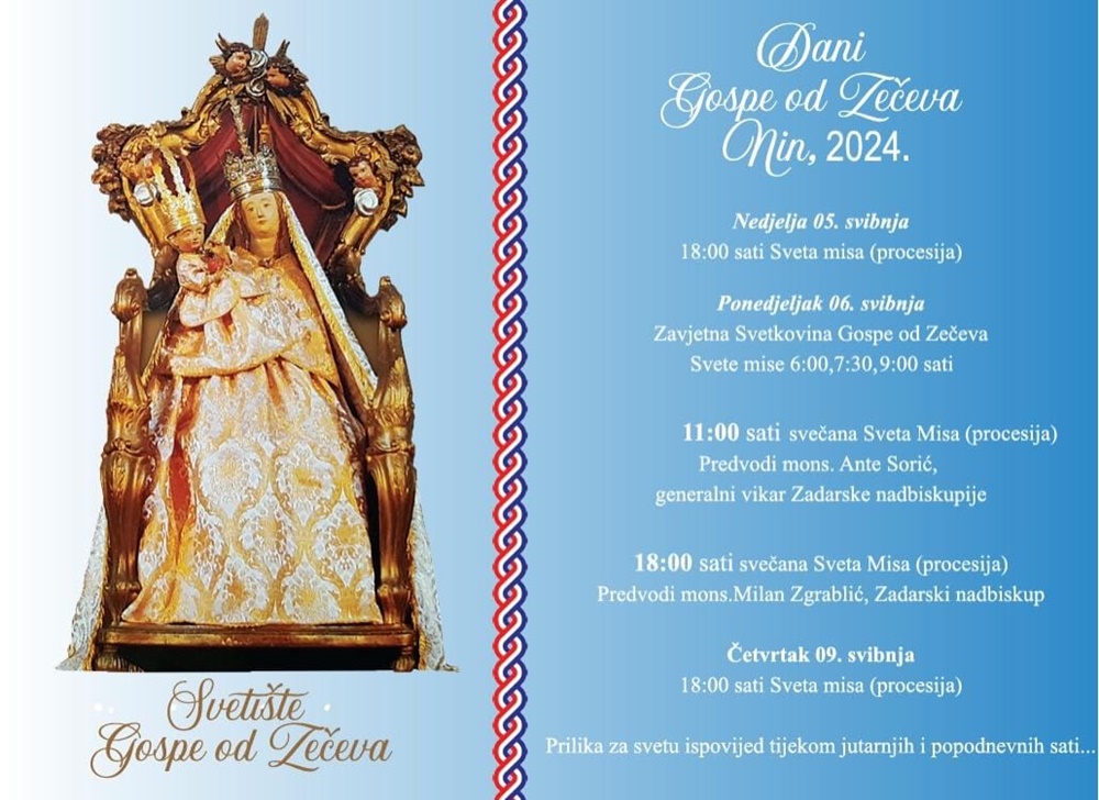 U središnjem marijanskom svetištu Zadarske nadbiskupije i jednom od najstarijih Gospinih svetišta u Hrvatskoj u gradu Ninu u tijeku su pripreme za proslavu Dana Gospe od Zečeva. Već je proteklo 508. godina od Gospinog ukazanja koje je potvrđeno od nadležnog biskupa tog doba.