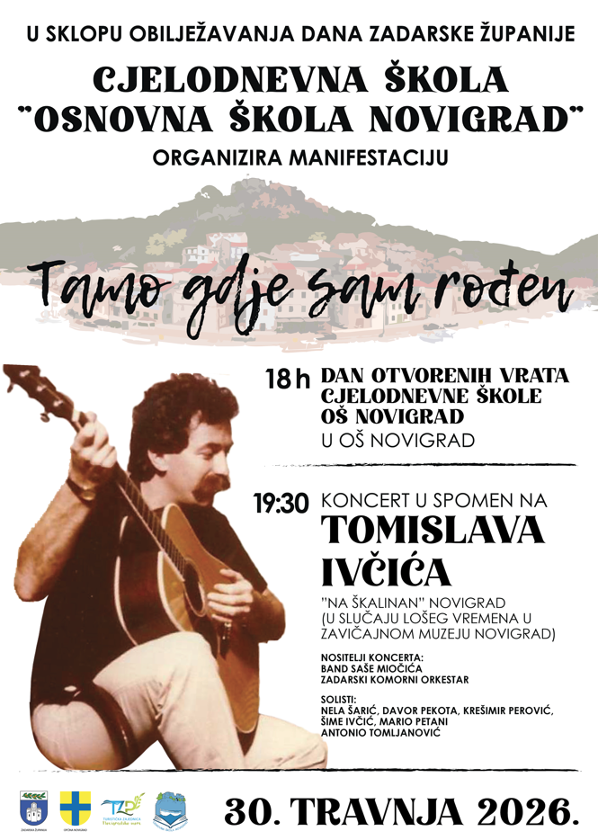 30. travnja 2026. godine također u sklopu Županijskih dana Osnovna škola Novigrad po drugi put organizira manifestaciju „Tamo gdje sam rođen“. U sklopu manifestacije održat će se Dan otvorenih vrata cjelodnevne škole OŠ Novigrad i koncert u spomen na Tomislava Ivčića.