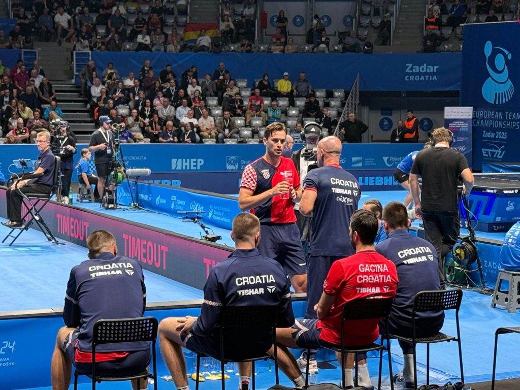 Hrvatska muška stolnoteniska reprezentacija nije se uspjela plasirati u polufinale Europskog prvenstva u Zadru, u četvrtfinalnom dvoboju bolja je bila Njemačka sa 3-1.Hrvatska je povela 3-0 pobjedom Tomislava Pucara protiv 15. igrača svijeta Patricka Franziske, ali sljedeća tri dvoboja, u kojima naši stolnotenisači nisu bili bez šanse, pripala su njemačkim stolnotenisačima.