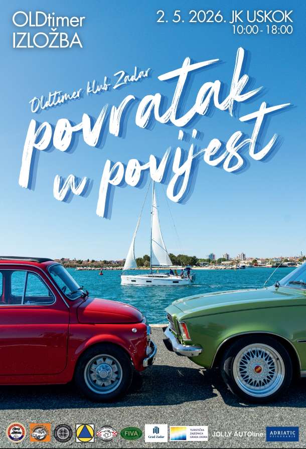 U subotu, 2. svibnja 2026., održat će se međunarodna manifestacija Povratak u povijest, OLDtimer IZLOŽBA 2026. u Zadru, u sklopu Jeriličarskog kluba Uskok, od 10:00 do 18:00h koju organizira Oldtimer klub Zadar.