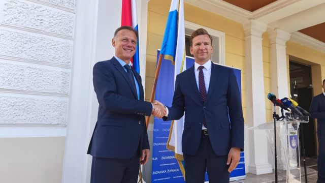 – Ja se prije svega želim zahvaliti predsjedniku Hrvatskog sabora, što je odabrao ova dva dana za posjet gradu Zadru i našoj županiji i nama je to izuzetna čast i prije svega želim i javno, osim što sam to napravio i na sastanku, čestitati predsjedniku Hrvatskog sabora na izvrsno vođenju Hrvatskog sabora u zaista zahtjevnim političkim okolnostima i na brojnim zakonskim odlukama koje je donosio Hrvatski sabor, a koji omogućuje daljni razvoj Republike Hrvatske. Mi smo nakon druženja sa građanima i šetnjom ovdje do zgrade Županije imali jedan zaista produktivan sastanak gdje smo iskoristili ovu prigodu da bismo predsjednika Sabora upoznali sa svim projektima koje mi realiziramo i pripremamo na području naše Županije također ovo je bila i prigoda da izvijestimo o posjetama ministara, podpredsjednika vlade u dosadašnjem dijelu mandata, koji su bili više nego produktivni. U tom smislu smo upoznali predsjednika s planovima i projektima koje realiziramo u prometnoj infrastrukturi, tu ističem komunalne vezove i željeznicu, proširenje piste Zračne luke, a nadalje prilikom posjete gospodina Bačića smo dogovorili i dodjelu zemljišta za mlade obitelji. S tim projektom i programom nastavljamo i dalje, a obuhvaćat će ukupno 10 jedinica lokalne samouprave. Mi ćemo sa svojim programom kojeg ćemo vrlo brzo prezentirati pomoći u izgradnji obiteljskih kuća za te mlade obitelji. Tu ističem također i početak izgradnje novog kontrolnog centra zračne plovitbe koji će osim Zagreba imati sjedište ovdje, izdvojeno baš na području naše županije i na idućoj skupštini ćemo donijeti odluku o darovanju tog zemljišta. Prilikom posjete ministrice Hrstić smo razgovarali o budućoj izgradnji Doma zdravlja u Zadru. To je projekt koji razvijamo zajedno sa gradom Zadrom, ali isto tako smo napomenuli obnovu 30 ambulanti diljem naše županije. Prilikom posjeta ministra Vlajčića smo dogovorili financiranje centra u kojem će se sustavno riješiti problem otpada iz marikulture. Također mi nastavljamo i upoznali smo predsjednika Hrvatskog sabora s projektom izgradnje Domova za starije i nemoćne. Poznato je da evo već sada imamo tri Doma za starije i nemoćne u izgradnji ili u pripremi, a da ostale projekte pripremamo. Tu je i vrlo važno ulaganje u školsku infrastrukturu, 20 projekata koje financiramo kroz Nacionalni plan oporavka i otpornosti – rekao je župan Bilaver u svojem obraćanju te zaželio Jandrokoviću ugodan boravak u Zadru.