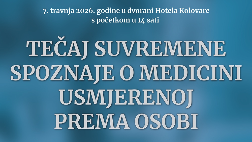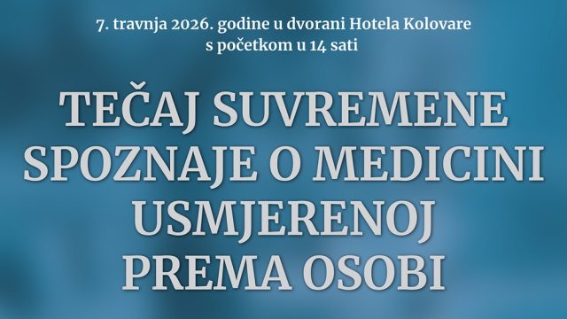U utorak, 7.4.2026. godine u dvorani Hotela Kolovare u Zadru i na ZOOM platformi, održat će se hibridni tečaj “Suvremene spoznaje o medicini usmjerenoj prema osobi”, u organizaciji Europskoga instituta medicine usmjerene prema osobi (EIMO) i u partnerstvu s Odjelom za zdravstvene studije Sveučilišta u Zadru.
