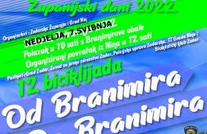 12. biciklijada „Od Branimira do Branimira“ Zadar-Nin-Zadar, održat će se 7. svibnja 2022. godine (subota) u trajanju od 10,00 do 14,00 sati .