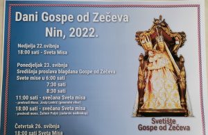 DANI GOSPE OD ZEČEVA NIN U ponedjeljak središnja proslava