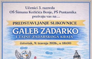 Učenici 3. razreda OŠ Šimuna Kožičića Benje, Područne škole Puntamika, s ponosom vas pozivaju na predstavljanje slikovnice „Galeb Zadarko i tajne zadarskoga kraja”. Promocija...