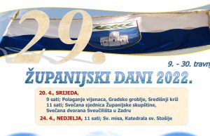 Ovogodišnji program Županijskih dana Zadarske županije započinju 7. travnja svečanim otvaranjem izložbe „Županijo, sretan ti rođendan“, obilježavanjem Svjetskog dana zdravlja na Narodnom trgu i...