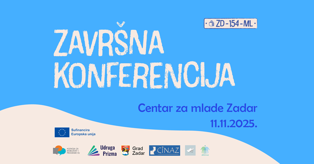 Želite saznati više o Programu za mlade Grada Zadra i rezultatima projekta? Dođite na završnu konferenciju koja će se održati 11.11.2025. godine s početkom u 11:00 sati u Centru za mlade Zadar.