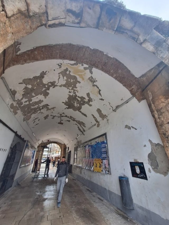 U cilju utvrđivanja prisutnosti vlage i štetnih soli u konstrukciji provode se sljedeća istraživanja: otvaranje sondi u žbuci do zidane strukture svoda od pune opeke na trima mjestima, mjerenje vlage u konstrukciji na pet mjesta te endoskopski pregled. Endoskopski pregled provodi se bušenjem sondi svrdlom promjera 10 mm, pregledom unutrašnjosti svoda endoskopom na najmanje sedam mjesta te uzimanjem jednoga dubinskog uzorka iz stijenke svoda radi analize prisutnosti štetnih soli.