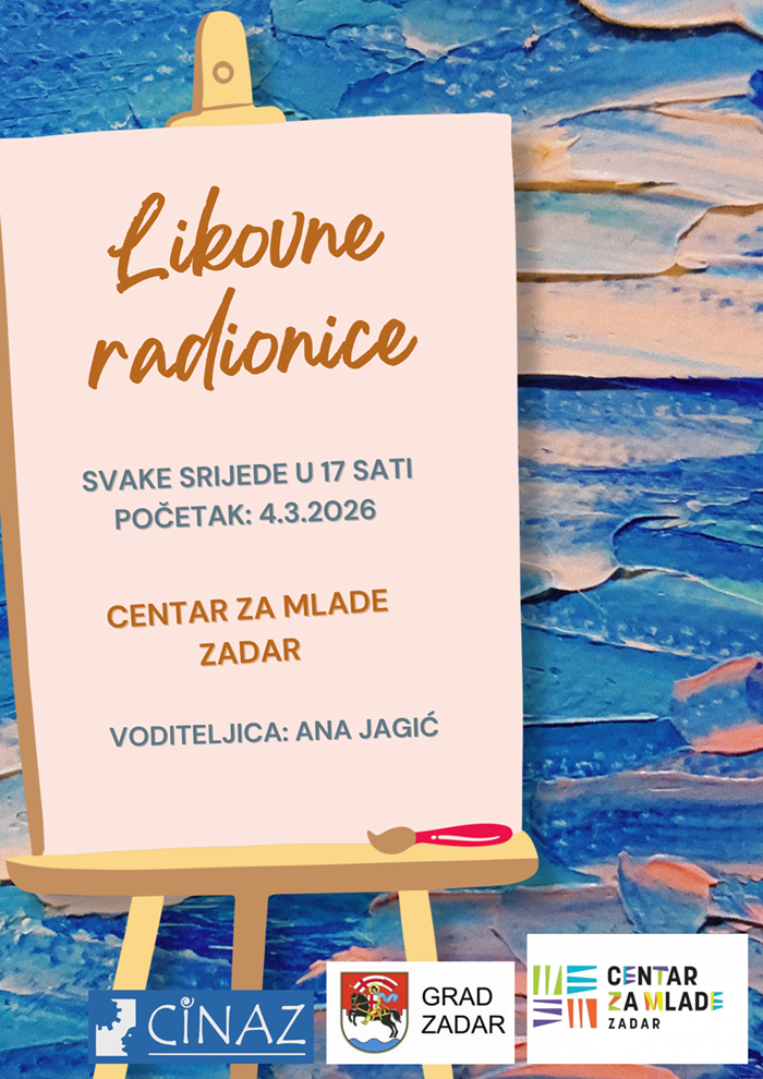 Udruga CINAZ poziva predstavnike medija i zainteresiranu javnost na završnu izložbu polaznika likovne radionice „Od ideje do djela“, koja predstavlja rezultat višemjesečnog kreativnog procesa održanog tijekom ožujka i travnja u sklopu programa “Klub mladih KLOOZ” u Centru za mlade Zadar.