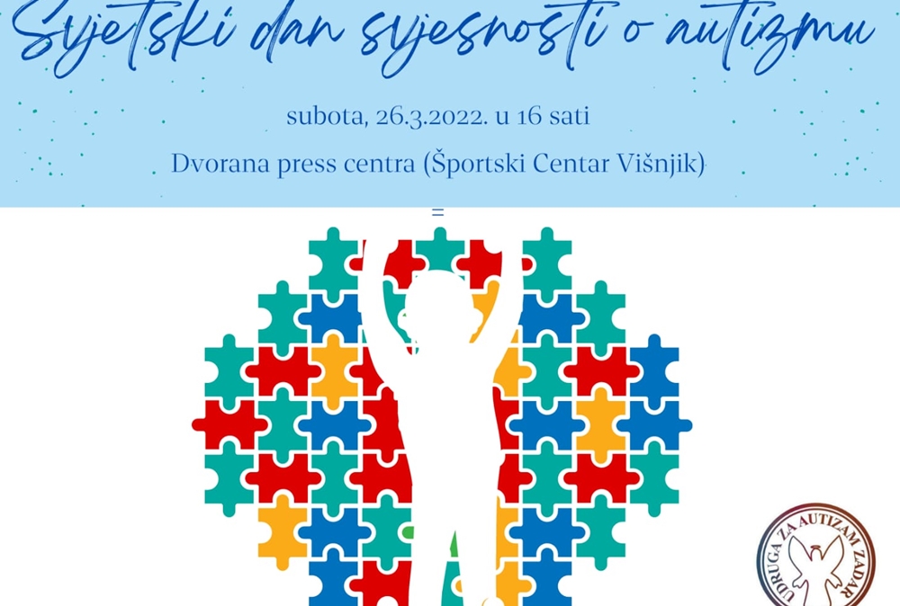 Udruga za autizam Zadar organizira besplatno predavanje o autizmu u subotu 26. 03 2022. s početkom u 16.00 sati u dvorani press centra Športskog centra Višnjik u Zadru.