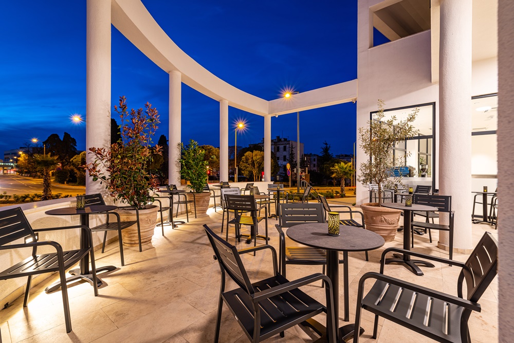 Kolonada je A la carte restoran u kojem je svaki zalogaj pripremljen s posebnom pažnjom, koristeći svježe, sezonske i lokalne sastojke, izravno nabavljene od OPG-ova. Mediteranski okusi spojeni su s modernim pristupom, stvarajući elegantnu i autentičnu gastronomsku priču.